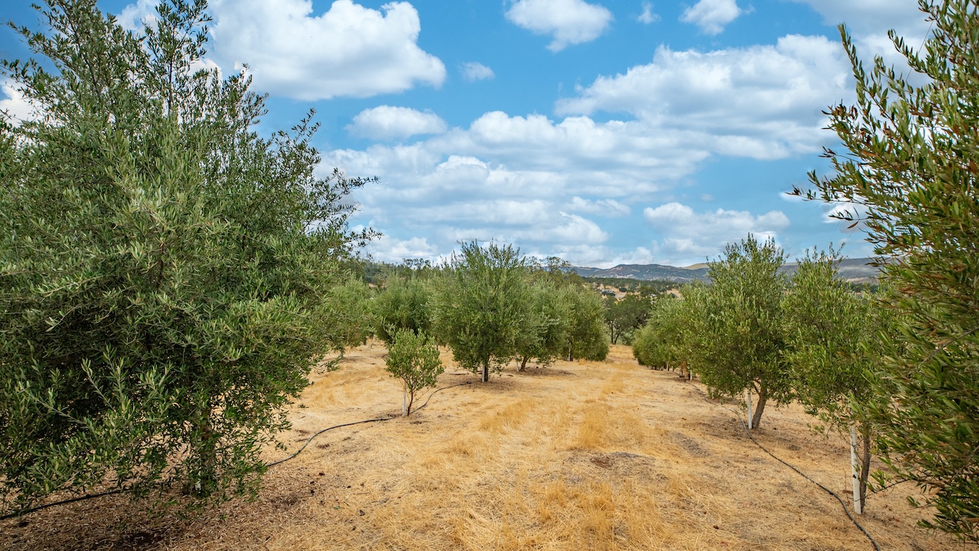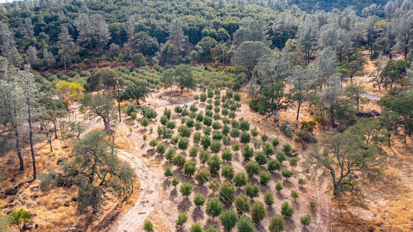 Upon arrival, you’ll be greeted by rolling meadows and established fruit trees, blending into an expansive 5-acre olive orchard containing ~1,000 trees of four distinct Tuscan varieties. Owners have produced up to 1,150 liters of olive oil. The orchard is secured by a sturdy 8-ft fence. Beyond the olive groves lies usable land for gardens, herbs, livestock, or trails. Developed and drivable roads wind through the property for access. Two wells plus seasonal springs support irrigation and domestic use.
