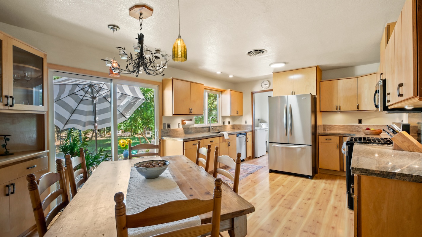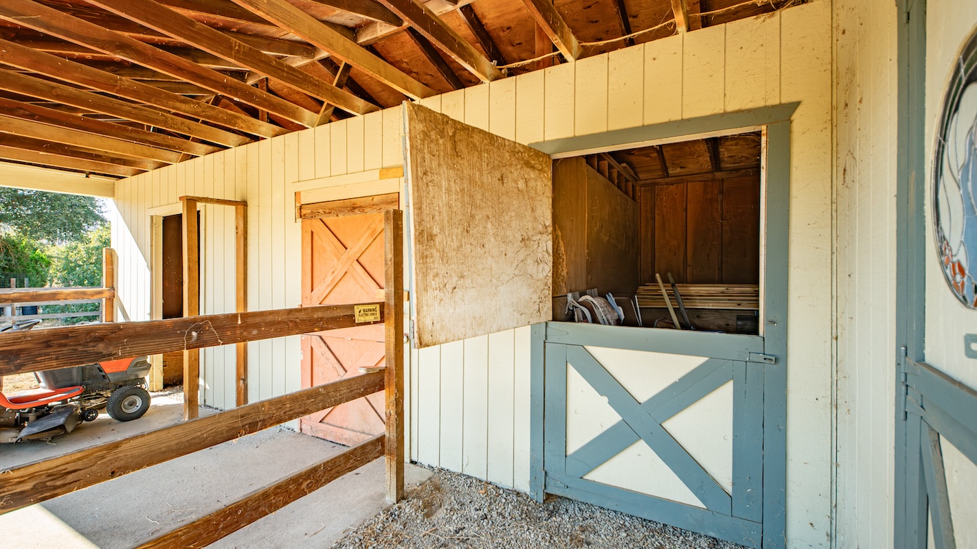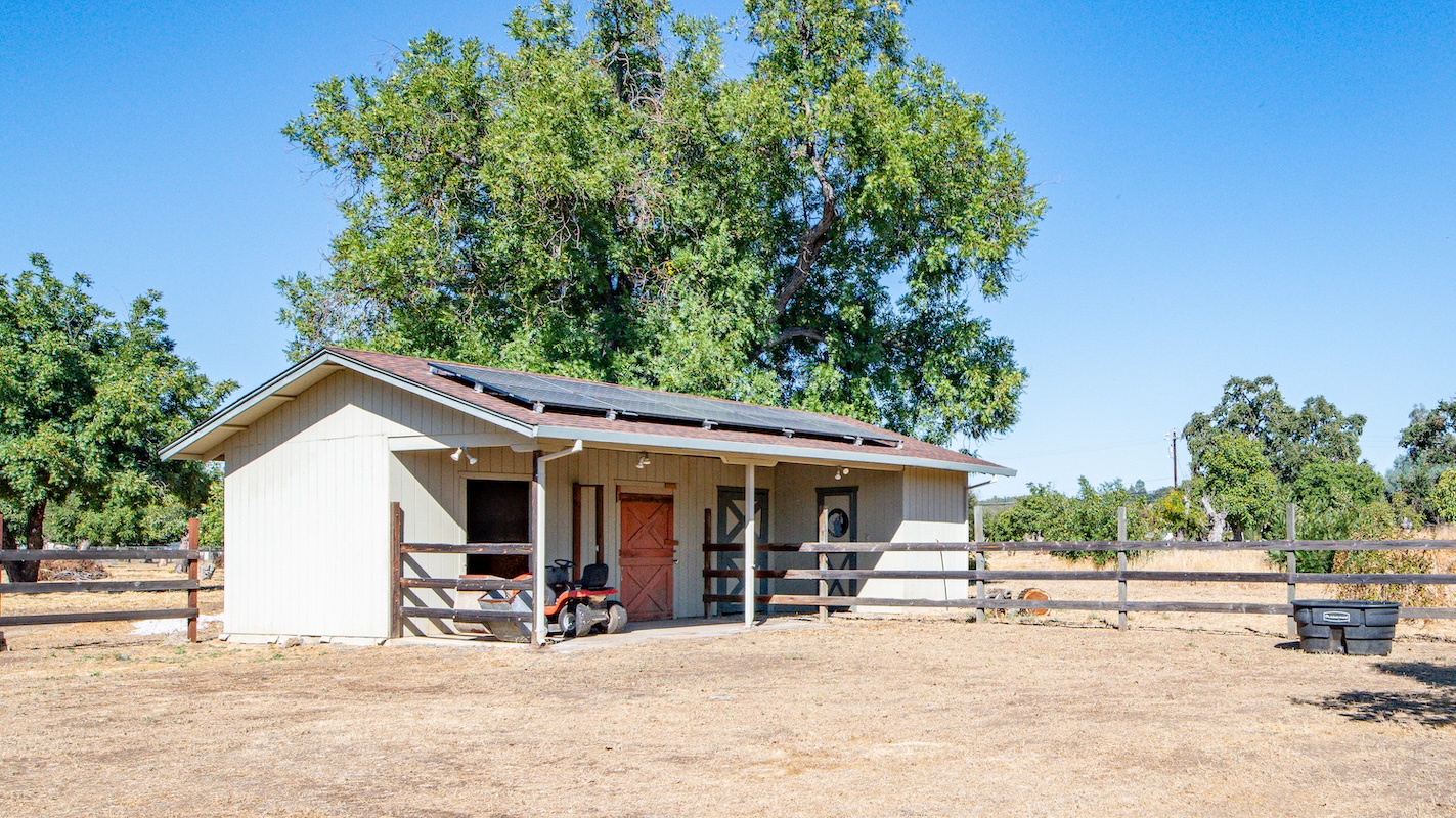 Outside, there’s a sturdy two-stall barn with corral, feed & tack rooms — perfect for horse lovers or small livestock. Ample parking and storage space accommodate trailers, RVs, or boats, and the oversized 2-car garage includes workbenches and storage plus a 240V level-2 EV charger.