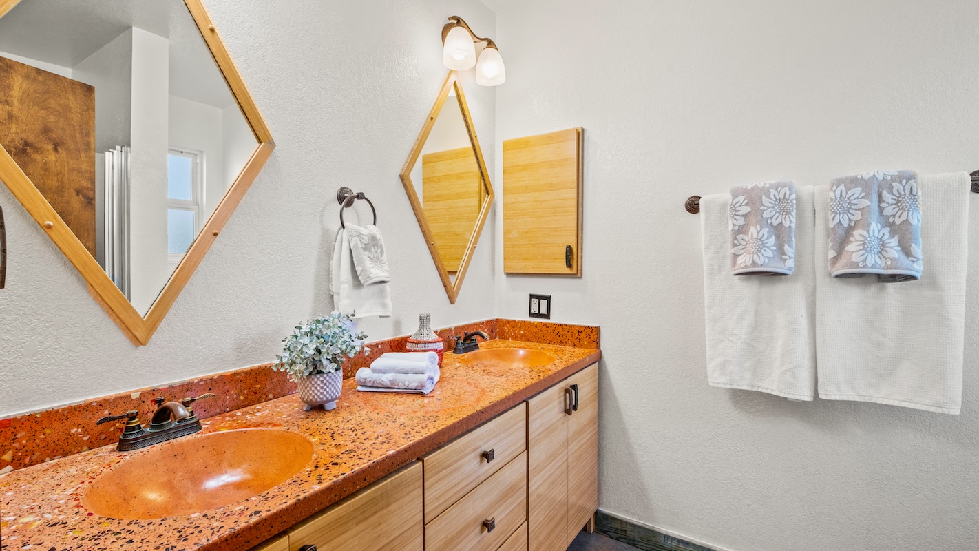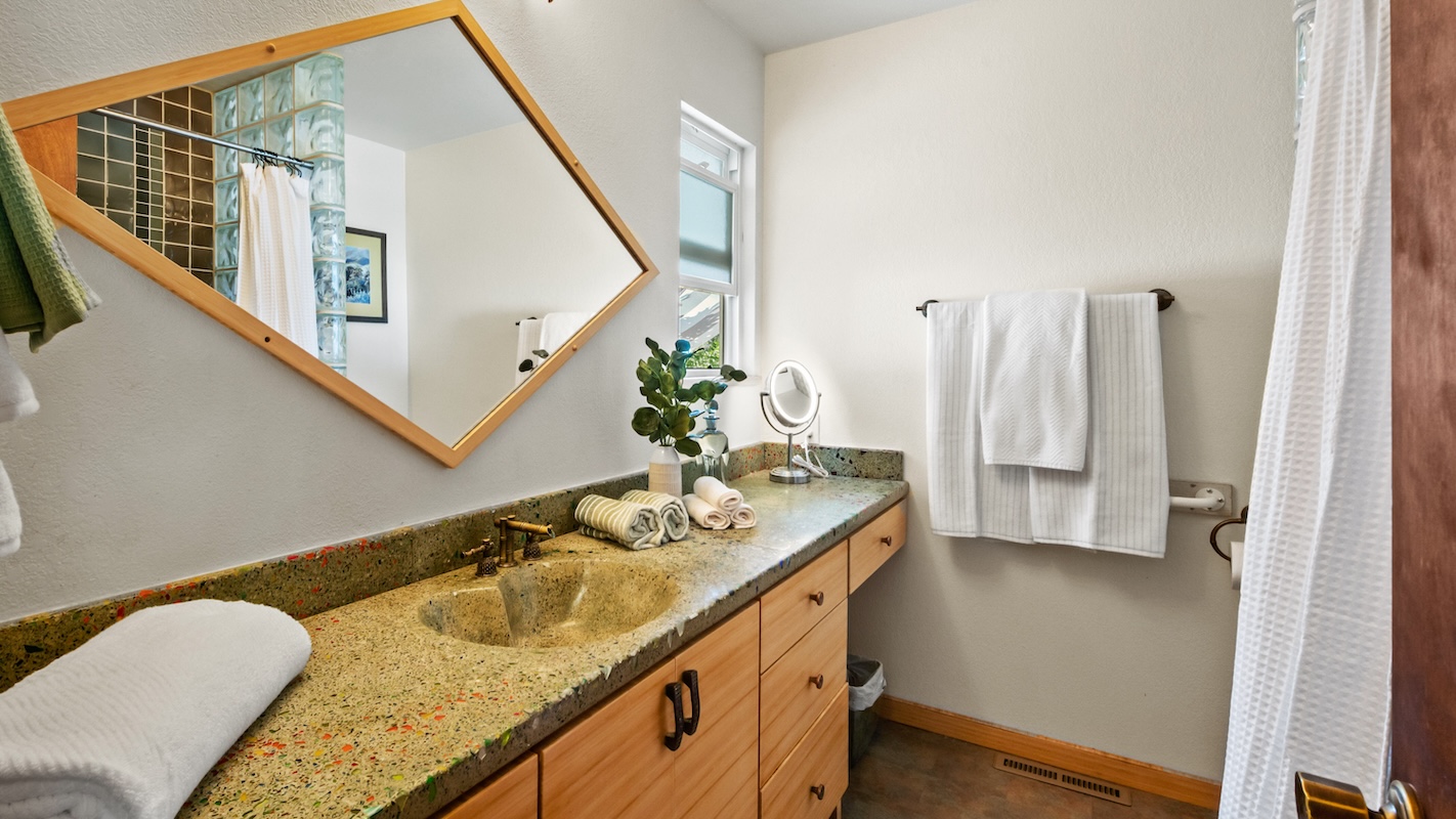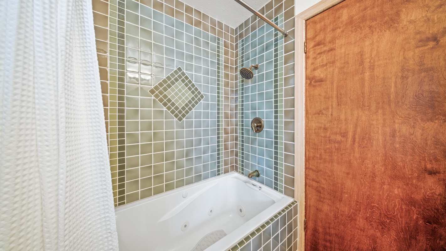 Jetted tub in hall bathroom